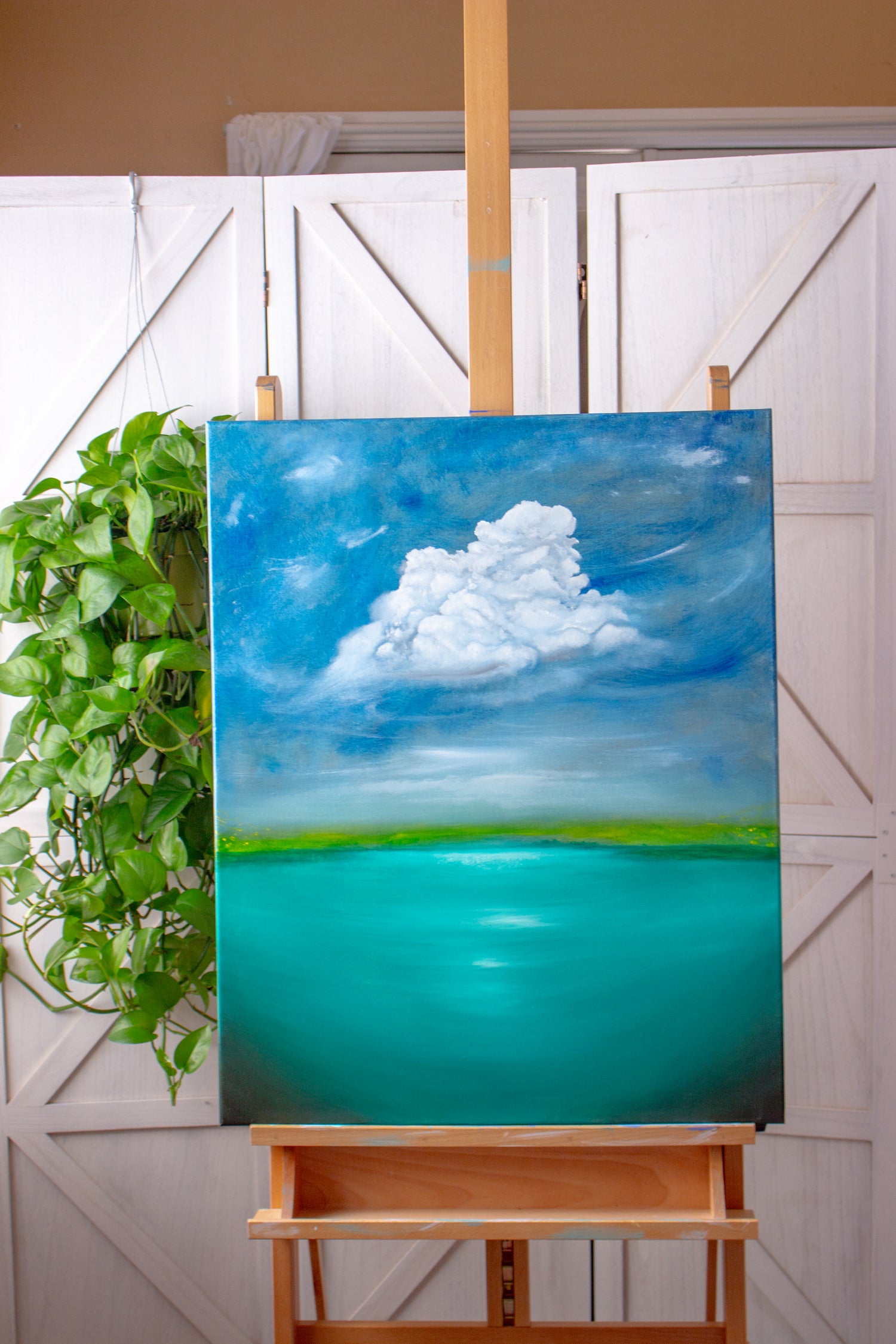 Kathy's work composes of abstract and semi realism where her work reveals the way she sees the world. Living between the world of human physical realm that feels like a world in a dream of imagination and realism where she can feel an inner knowingness of the spirit of a true essence, Kathy paints the world she lives and shares the concept of living merging in oneness.