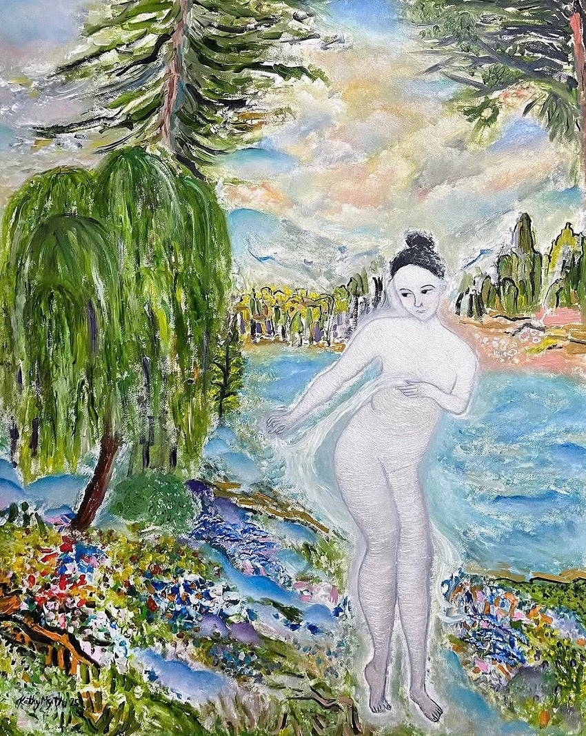 Kathy My Thi is a creator of this new art technique where oil painting is used to create silky texture seen in silk threads. With an eye for creating the illusion of silk thread, Kathy has finely formed the combination of bold highlighted lines yet subtle blended touch with shades of hues to "thread" oil into silk with impressionism. Threading oil is formed from many layers of back and forth lines until the silk texture comes to life like the touch of magic with the wand of the paintbrush. From her cultural background as a Vietnamese heritage where silk fabric is used as a staple of Vietnamese culture, silk threading art has influenced and paved her way into creating a new art form and introducing a creative approach to oil painting medium.