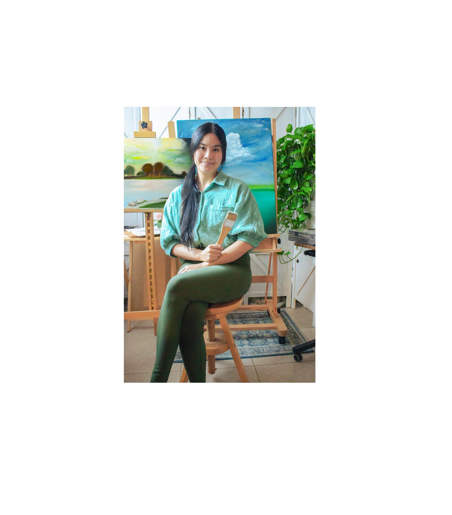 Kathy My Thi paints the world she lives with her art, living in two worlds of realism and abstract. The way she paints represents how she feels about the constant changing tides of emotions and outward physical realities. She finds art to be a spiritual experience, the beauty of coming into oneness with everything around her.