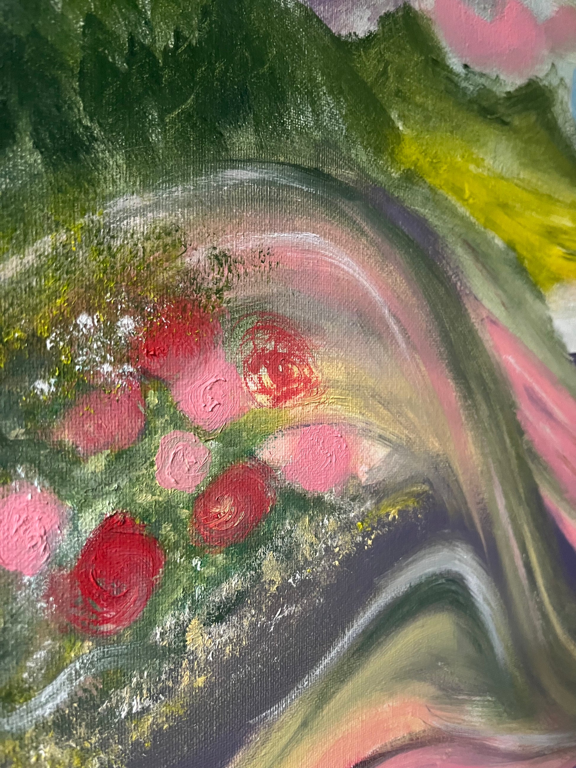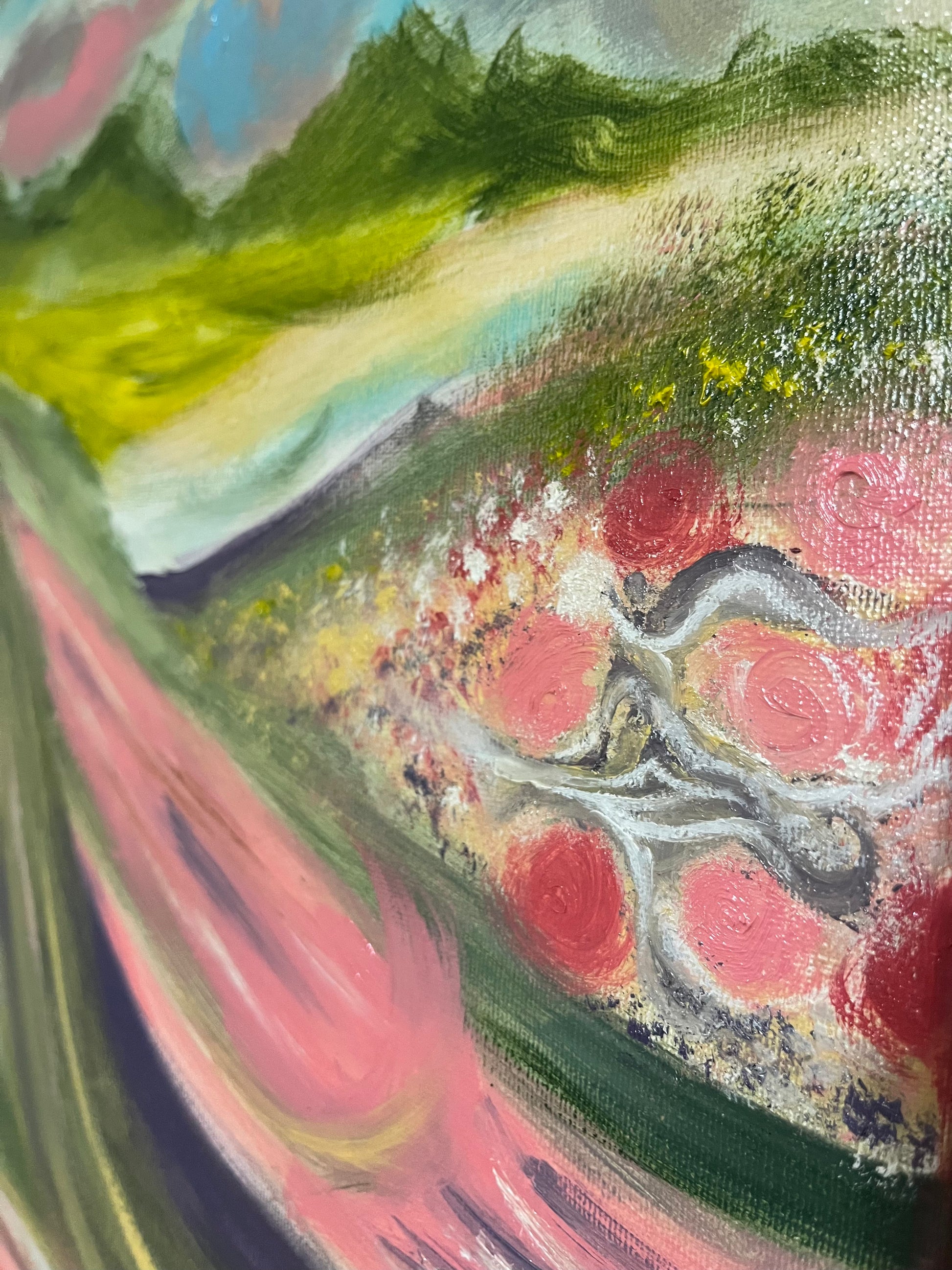 An artwork piece in Swirling In Oneness series to depict the human interconnectedness and existence merging in oneness with nature.