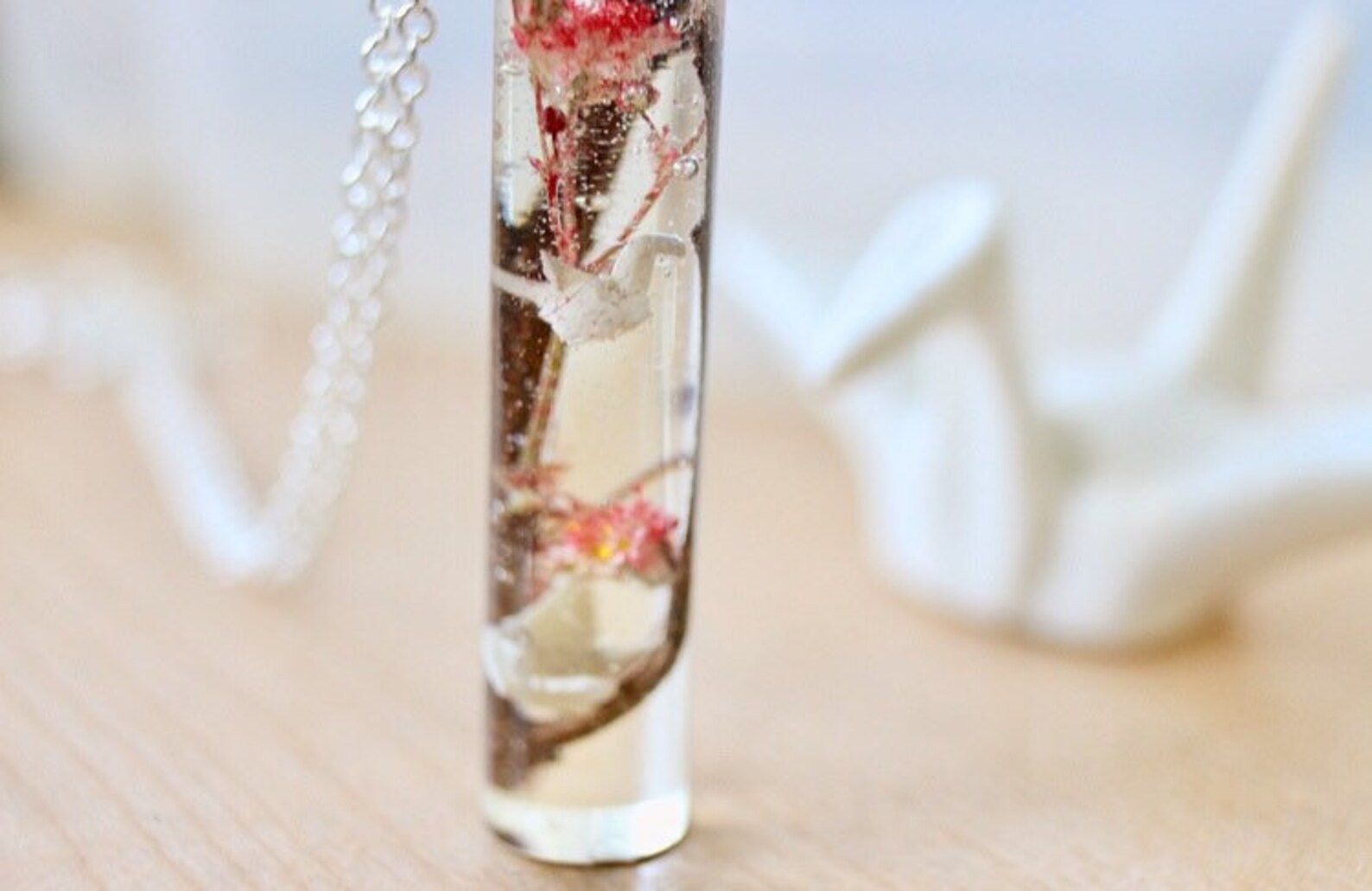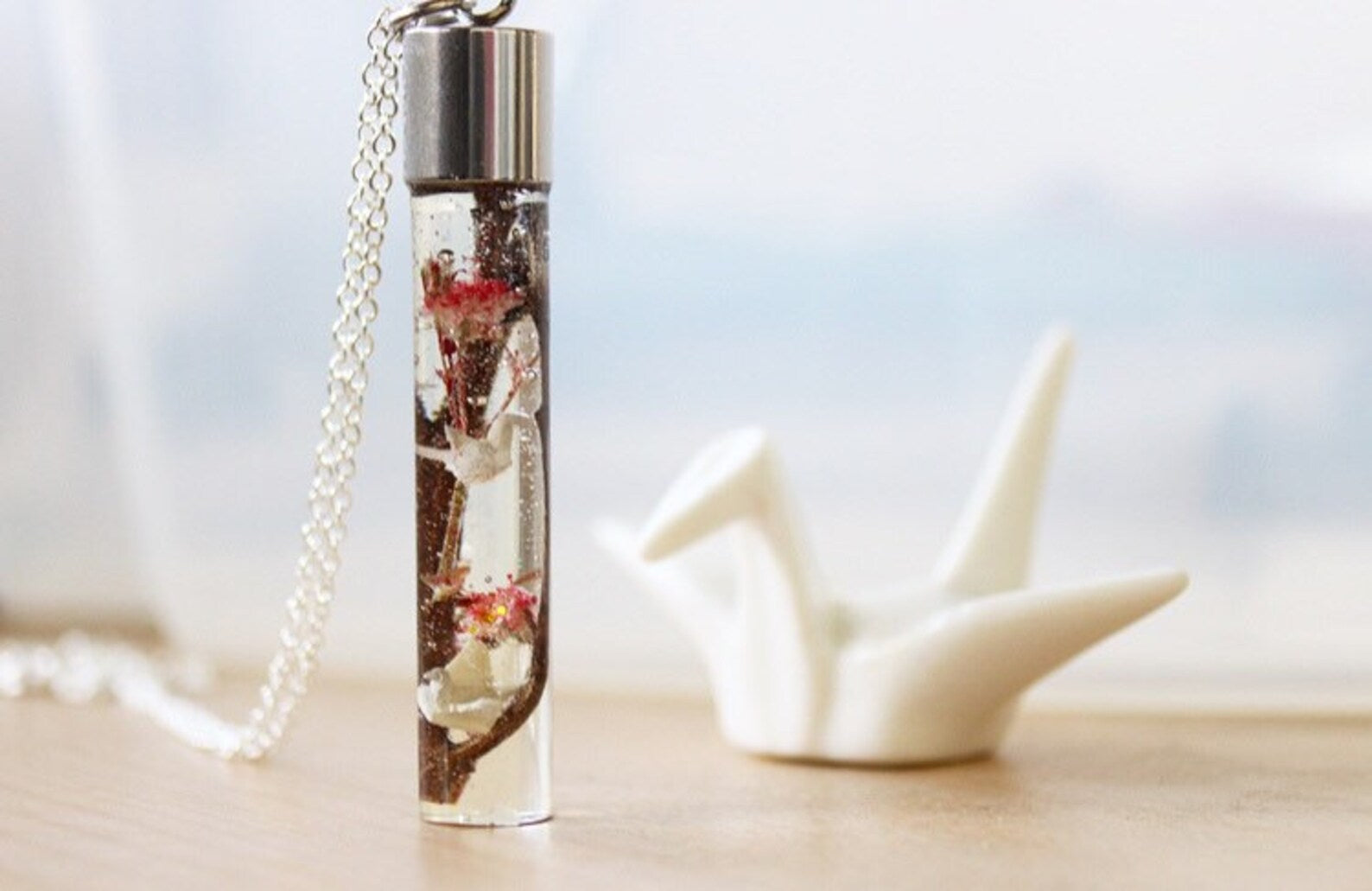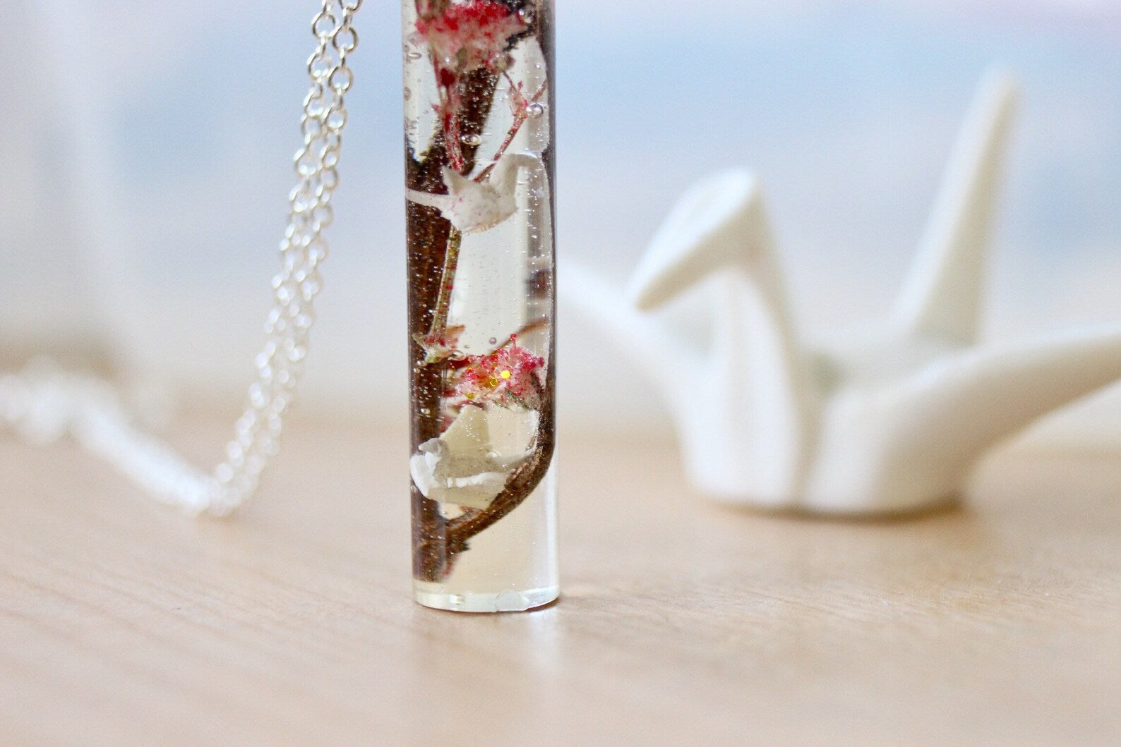 Sculpted By Hand Paper Crane Cherry Blossom Tree Necklace