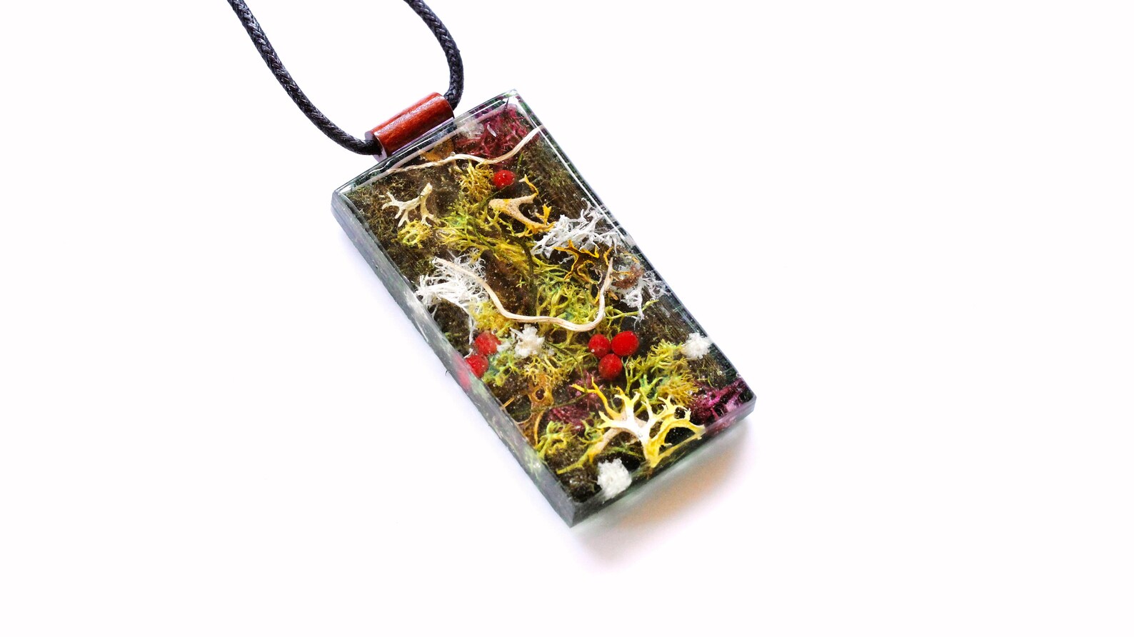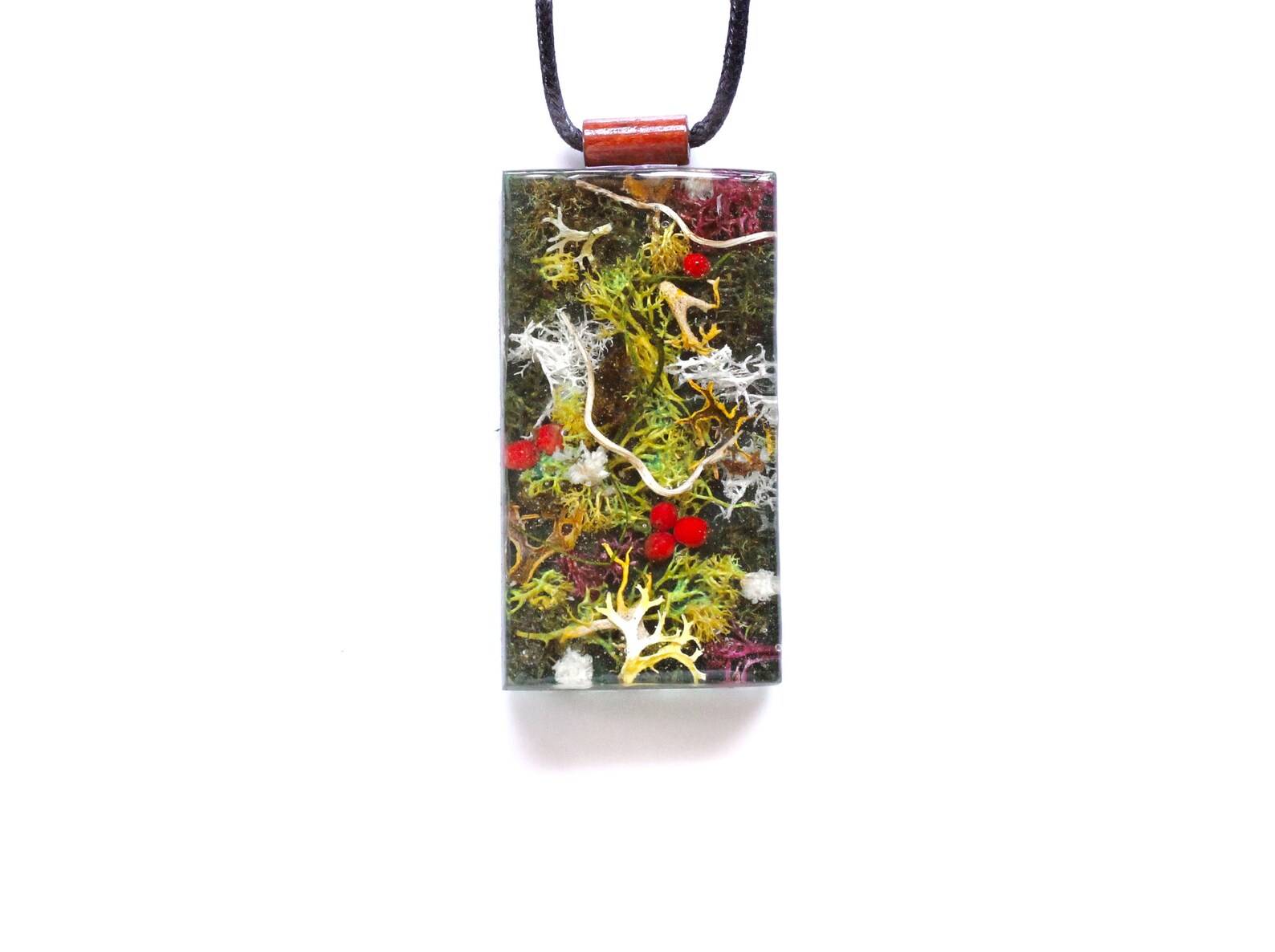 Woodland Moss Berry Vine Resin Art Necklace